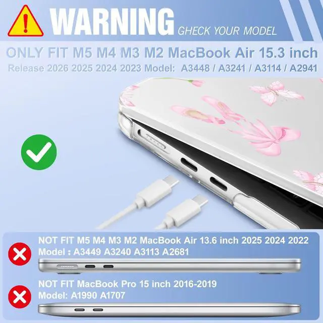 • Designed ONLY to be Compatible with 2023 2024 2025 2026 Release MacBook Air 15.3 inch Model: A2941 / A3114 / A3241 / A3448 Apple M2 M3 M4 M5 Chip with Liquid Retina display Fits Touch ID. Pls verify Model No. the underside of Laptop before buying.