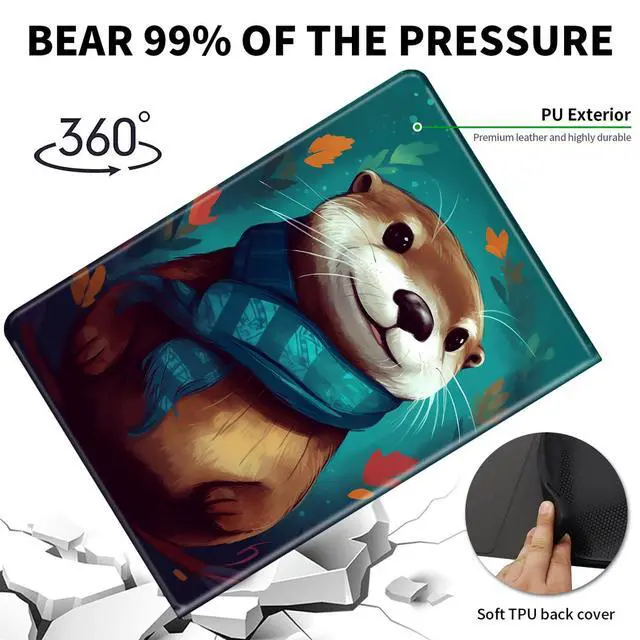 ACWDMKH Case for All-New Kindle Fire HD 10 & 10 Plus Tablet (13th/11th Generation,2023/2021 Release) 10.1" Leather Slim Adjustable Stand Smart Cover with Auto Wake/Sleep,Cute Otter Green