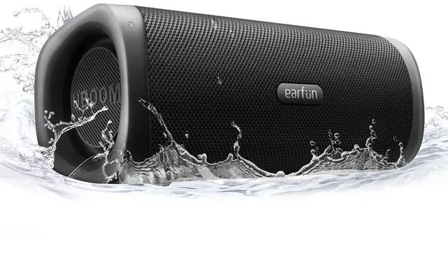 ^^ [Indoor & Outdoor Mode, Bring the Party Anywhere] Indoor modes deliver full bass and balanced sound, whereas outdoor modes deliver louder sound and longer battery life. You can also turn the video mode on with super low latency for better video experience while indoors. EarFun Bluetooth speaker size is small, but you can enjoy the powerful sound through the large output of 28W outdoors. ^^ [IP67 Dustproof & Waterproof, Ideal Bathroom Speaker] The wireless speaker is IP67 Fully Waterproof with EarFuns Innovative Sweatshield Technology, and its crafted and sealed with waterproof materials so there is no problem washing, and it floats too.