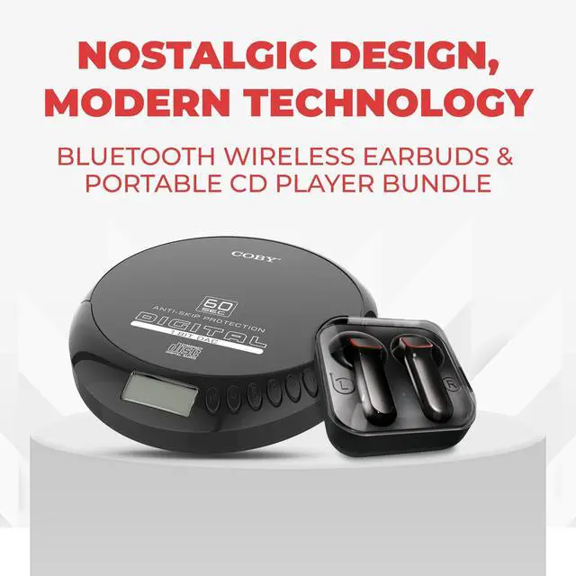 INCLUDES WIRELESS & WIRED EARBUDS: This complete listening bundle includes rechargeable wireless earbuds with charging case plus wired earbuds for flexible listening at home, work, school, or travel. ^^ MP3 CD PLAYBACK WITH ANTI-SKIP PROTECTION: Supports CD, CD-R, and MP3 discs while anti-skip technology helps prevent interruptions when walking, commuting, or traveling. ^^ BUILT-IN FM RADIO & AUDIO FEATURES: Tune into local FM stations with programmable presets. Playback controls include repeat, shuffle, intro preview, and Super Bass for richer sound. ^^