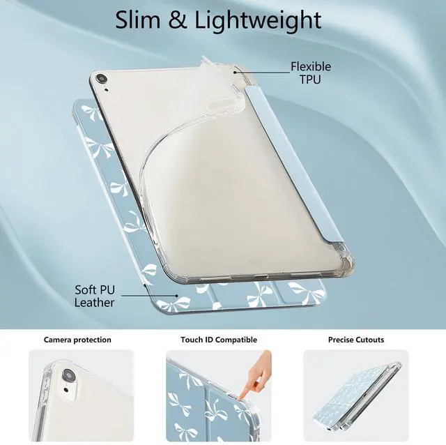 High Quality&Perfect Fit: This kawaii blue bow pattern case for ipad is made of soft silicone on the front and durable TPU on the back. It has a comfortable lining that can protect your pad from scratches and bumps. Meanwhile, this cute lovely girls cover for ipad is perfectly tailored to easily access all controls and functions (camera, speakers, ports, and buttons) ^^