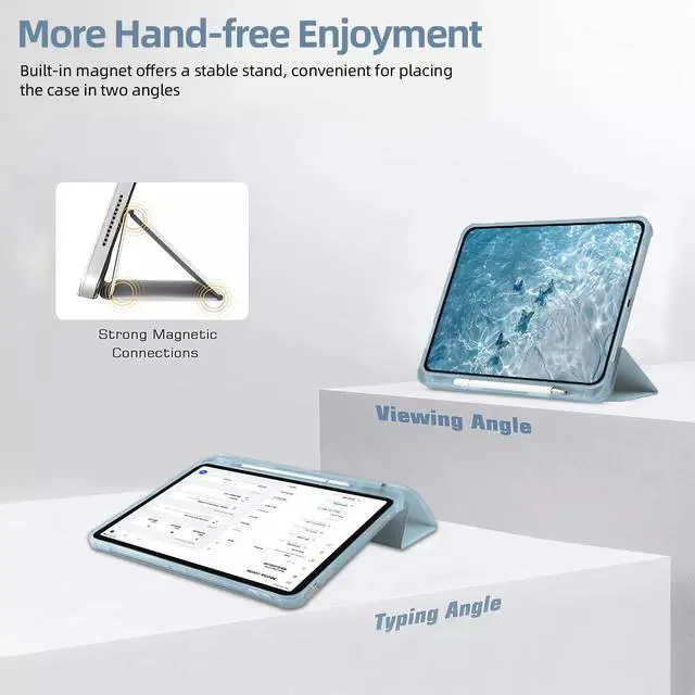 Automatic sleep/wake up&built-in pen holder: This kawaii blue bow pattern case for ipad can be opened without touching a button. When the case is opened, it will automatically wake up. When you close it, the pad will automatically enter sleep mode. Helps to extend battery life. This cute lovely girls case for ipad has a hidden slot designed specifically for storing pencils, making it easy to carry pencils with you.