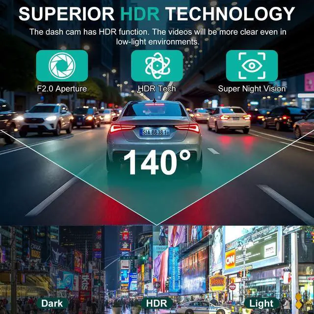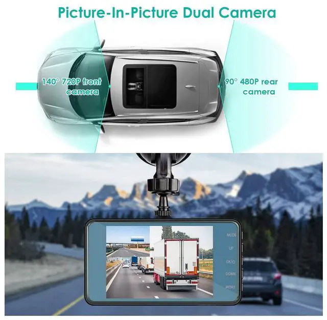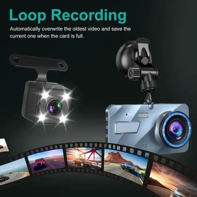 2025 Upgraded Dual Dash Cam Front and Rear Crystal Clear Recording Day & Night. This dashcam front and rear camera features a 720P HD front car camera and a waterproof rear camera, ensuring sharp, detailed footage in all conditions. With Wide Dynamic Range (WDR) and IR LED night vision, the front dash camera captures license plates and road signs clearly, even in low light. The 140 front wide-angle lens and 90 rear lens eliminate blind spots, providing full coverage for safer driving. ^^ 4-Inch Touch Screen Dash Cam Easy Operation & Instant Playback.