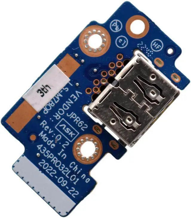 Part Number (s): LS-M78OP JPR62, 435PRO32L01 ^^ This replacement part consists of 1x SuperSpeed USB Type-A 5Gbps signaling rate. ^^ This repair part is used to replace damaged worn out/faulty/Broken USB port Board on your Laptop. ^^ Each