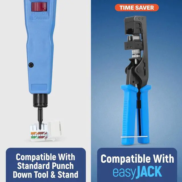 Compatibility - compatible with our 90 degree angled speed termination tool - easyJACK (B094WB91H3). These cat 6 jacks keystone rj45 can also work in conjunction with a standard punch down tool and punch down stand for convenience. ^^ Slim Profile Design - Can be used with a Keystone patch panel, wall plate, or surface mount box with standard or slim keystone blank openings. compatible with Leviton QuickPort System and slim Decora style wall plates ^^ High Performance - Everest keystone cat6 jack is Suitable for 1 Gigabit (10/100/1000 Mb/s) up to 328 feet and 10 Gigabit up to 165 feet.
