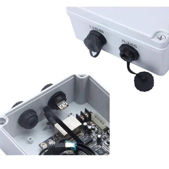 Connection method: Pass the cable through the waterproof cover, the connector, insert the RJ45 waterproof main body tube, install two rubber rings on the waterproof connector, and then rotate the waterproof cover on the waterproof connector about two and a half times (the first time). This product is IP67 waterproof and cannot be used in water for a long time.
