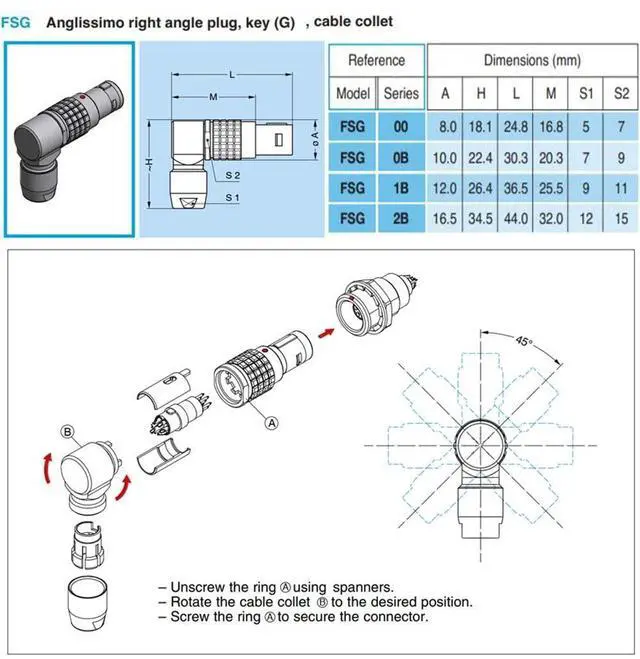 Right Angle plug: FSG. 0B (2 3 4 5 6 7 9 pin available).