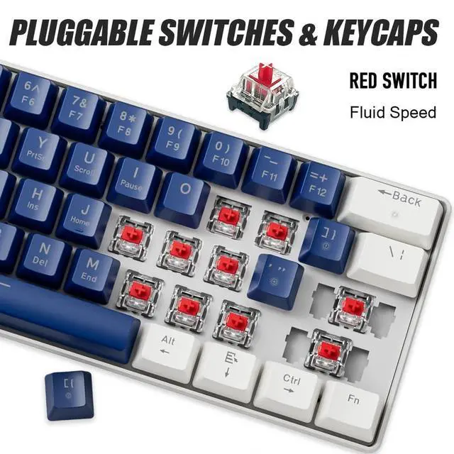 Linear & Smooth Red Switches Effortless Keystrokes Red switches offer a soft and quiet linear feel, perfect for fast-paced gaming and long typing sessions without tactile bumps or clicks.