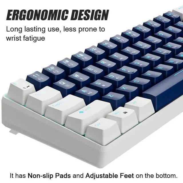 ^^ Full Anti-Ghosting Performance: All 68 keys are conflict-free for smooth, uninterrupted gaming and typing. Features a stylish black, gray, and red mash-up design, ergonomic suspended keycaps with durable double-shot injection molding. Equipped with dual adjustable kickstand feet for customized typing angles and a detachable USB cable for added portability and conveniencecombining functionality with modern aesthetics. ^^ Durable & Stylish Dual-Tone Keycaps The high-contrast white and gray keycaps not only look sleek but are also wear-resistant and fade-proof, ensuring long-term visual appeal and usability. ^^ Designed for comfort, the double kickstand feet allow you to easily adjust the keyboard angle for a better typing or gaming posture. ^^ Whether you're editing, streaming, coding, or gamingAbucow's compact keyboard adapts to your world.