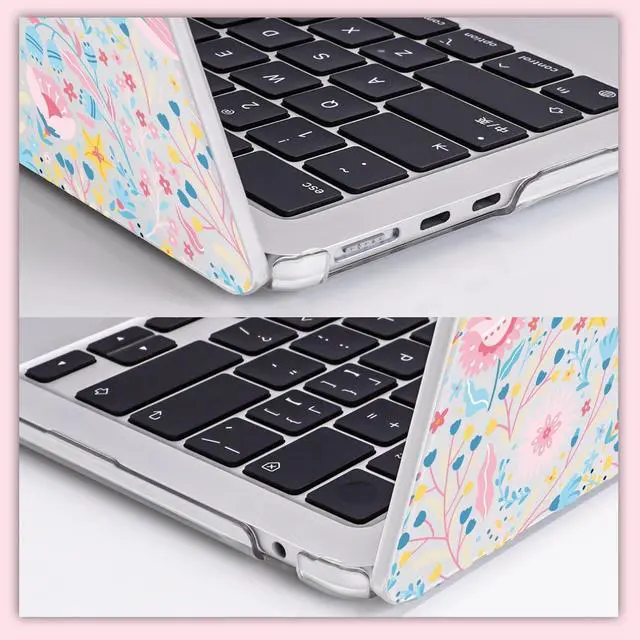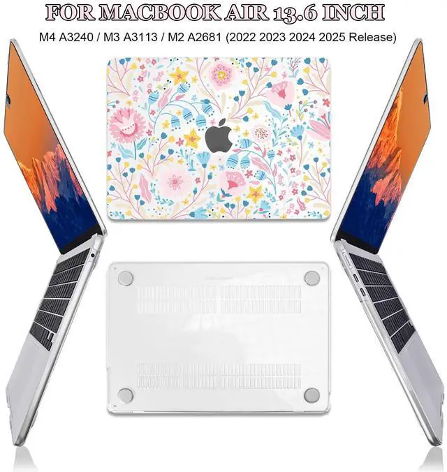 case dimension: 12 x 8.5 x 0.4 inch. ^^ [High-Quality Material & Protection] - Made from premium, eco-friendly plastic materials, this case is not only durable but also environmentally conscious. Its built to last, offering long-term protection for your laptop while against scratches, bumps, and daily wear and tear, keeping your macbook air m5 m4 m3 m2 looking as good as new. ^^ [Precise Cutouts & Easy Installation Removal] - The precise cutouts allow easy access to all ports, buttons, and features without removing the case. Our protective case has micro clips that securely fastens to your MacBook air 2025 m4, and snaps off with easy when needed. ^^ [Complete Bundle] - The package includes 1 printed pattern top case, 1 clear bottom case, 1 matching color keyboard cover, 1 HD screen protector, 1 set dust plug and 2 webcam cover.