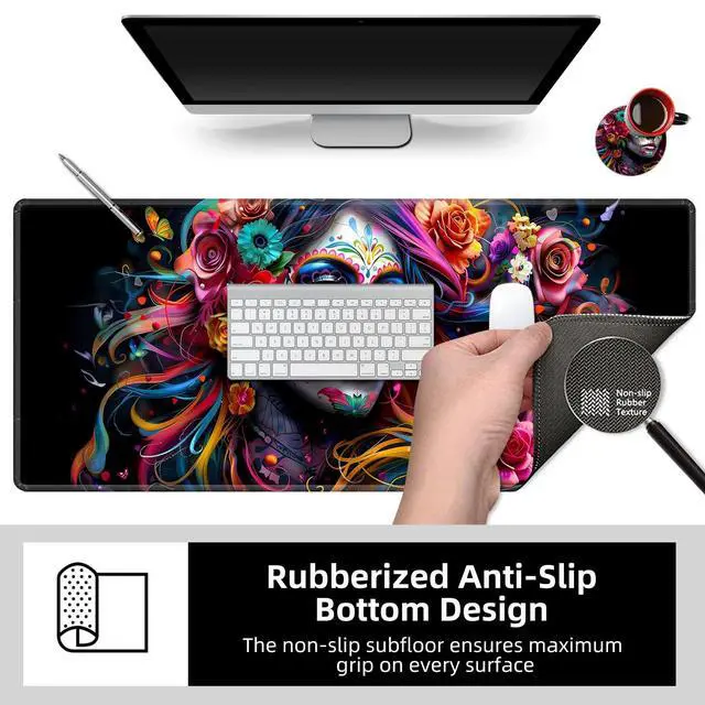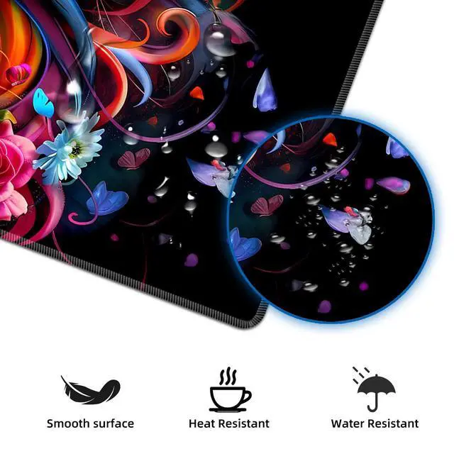 - Experience the ultimate gaming performance with our large gaming mouse pad. Its smooth surface provides precise tracking, optimizing your mouse's responsiveness. - The desk mat's non-slip backing ensures it stays securely in place, even during intense gaming sessions. - Not just for gamers, this versatile desk pad is also ideal for office use. - Keep your desk organized and your mouse and keyboard in place with this convenient desk protector mat. - It also doubles as a desk cover, protecting your desktop from daily wear and tear. Upgrade your workspace with our extra-large desk mouse pad.