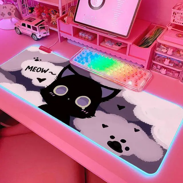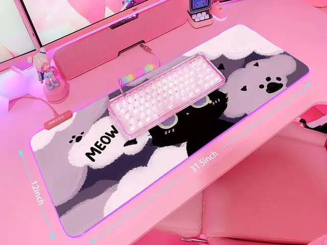 JMIYAV Pink RGB Gaming Mouse Pad 31.5x12 Inch PC XL Large Extended Glowing Led Light Up Desk Pad Non-Slip Rubber Base Computer Cute Mousepad Mat Desk Accessories Gaming Setup 242