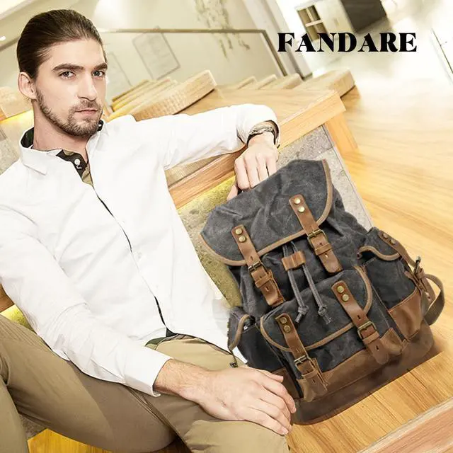 FANDARE Vintage Backpack for Women & Men 15.6 Inch Laptop Backpack Large Capacity Canvas College Bookbag Travel Hiking Work Commuter Daypack Gray B