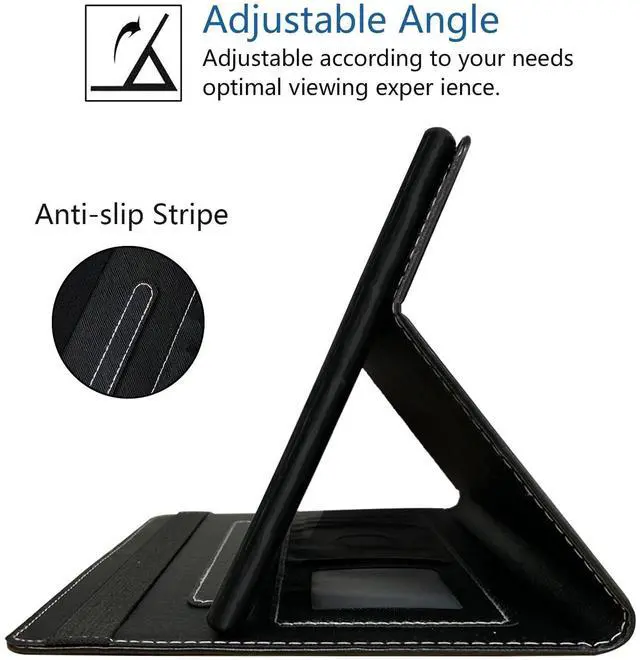Designed with 4 delicate card slots inside for you to carry your necessary cards. There is a flexible pencil holder at the edge of the shell for keeping your stylus in place. ^^ Auto Wake/Sleep- Built-in magnetic strip, automatically wakes or puts your tablet to sleep when the lid is opened and closed. Protects and extends battery life. ^^ Stand Design- Convenient stand position for watching movie or typing, and offer a cozy angle to view and let your hands free. Easy installation and removal.