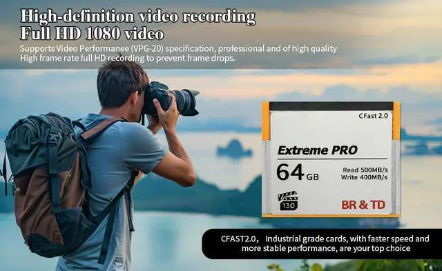CFast 2.0 technology belongs to professional high-performance industrial grade cards ^^ Suitable for cameras and camcorders, capable of faster and higher definition recording ^^ It has faster and smoother read and write speeds than regular memory cards ^^ Video Performance Guarantee 130 (VPG 130) for cinema-quality 4K video
