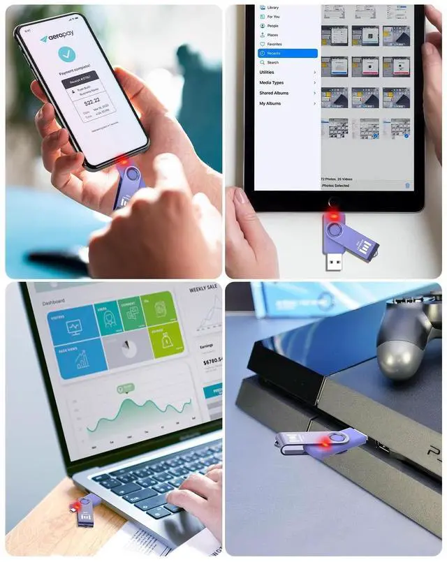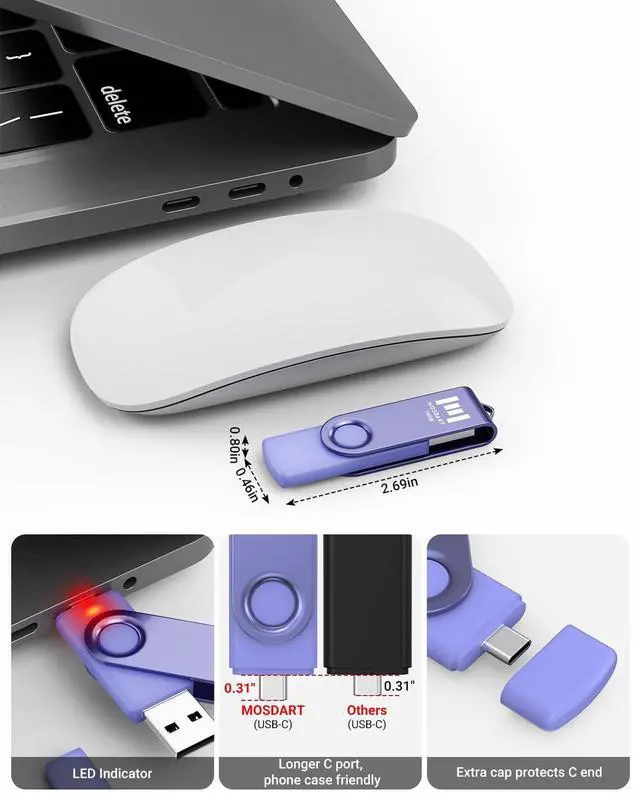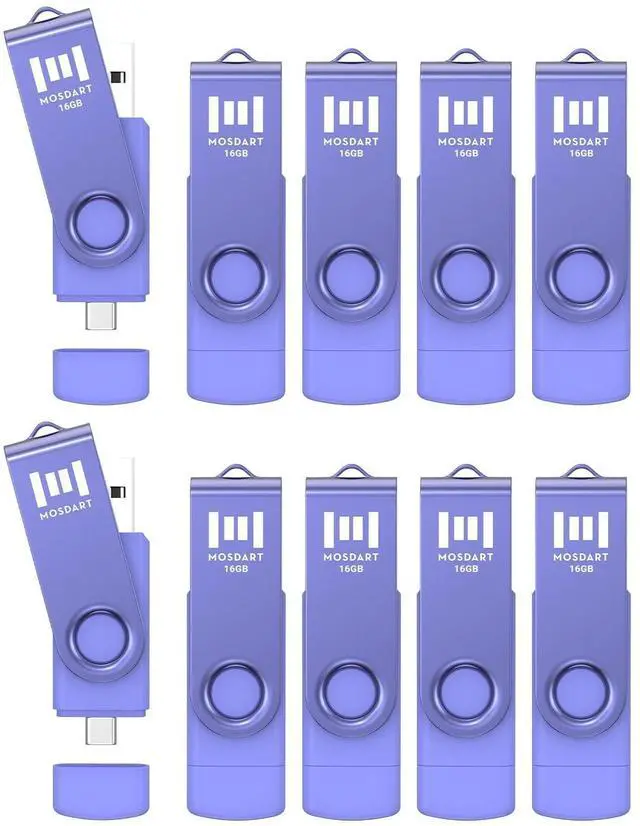 10pcs 16GB USB-C OTG Flash Drive10pack USB 2.0 16GB Dual USB A and USB C flash drives package. Bright purple color and unique design help to avoid confusion from others USB flash drive. ^^ Wide CompatibilityWith USB A and USB C Ports, this 16GB Thumb drive allows you to use on laptops, Macbooks, desktops, iPads, android phones, iphone15, 16, 17 series, car audio, printers, smart TV, embroidery machine, Xbox, ps4. ^^ LED IndicatorLED indicator light up when you plug the 16GB thumb drive to the devices, the light blinks while write/read activities are on process.
