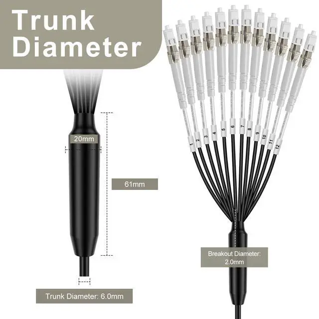 It offers versatile installation options (overhead, direct burial, or conduit routing) to adapt to different environments. Experience unmatched speed and performance with this advanced fiber optic cable. ^^ Easy Installation and Connectivity--- The OM3 LC 6-core outdoor armored fiber optic cable ensures hassle-free installation and seamless connectivity. Equipped with common LC connectors, it enables quick plug-and-play connections. Designed with user-friendliness in mind, it simplifies the installation process for professionals and regular users alike. ^^ 5.0 mm Outer Diameter Armored--- The OM3 LC 6-core outdoor armored fiber optic cable features a larger 5.0 mm outer diameter, providing superior robustness compared to standard 3.0 mm cables.