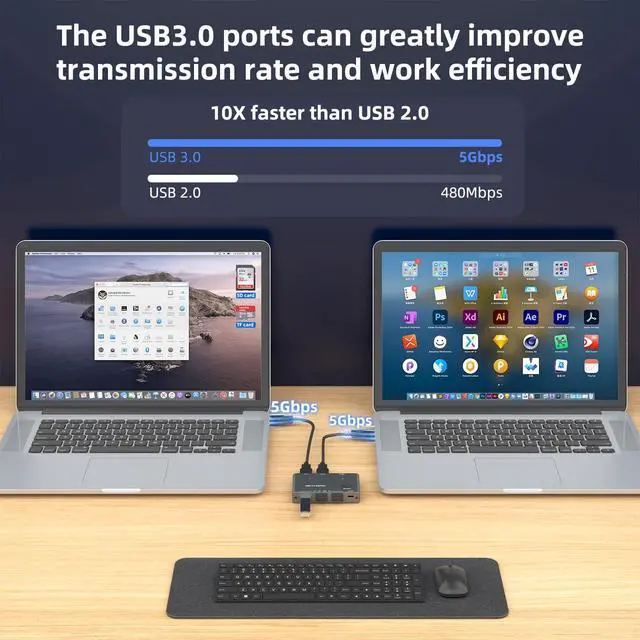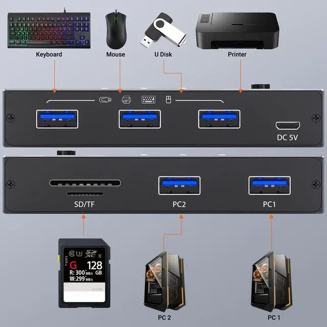 (*It is recommended to power supply when using 3 devices simultaneously to avoid disconnection due to insufficient power.*) Transfer Files in Seconds: With the 3 x USB 3.0 +TF card ports, USB Switcher supports up to 5Gbps data transfer speed. You can easily transfer data from U disk. It's backward compatible with USB 1.1 2.0, too.