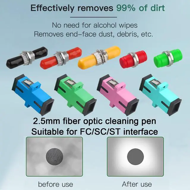 • [Application] Suitable for cleaning 2.5mm SC/ST/FC connectors. Extendable tip up to 8.46 inches to meet your needs of cleaning recessed connectors.