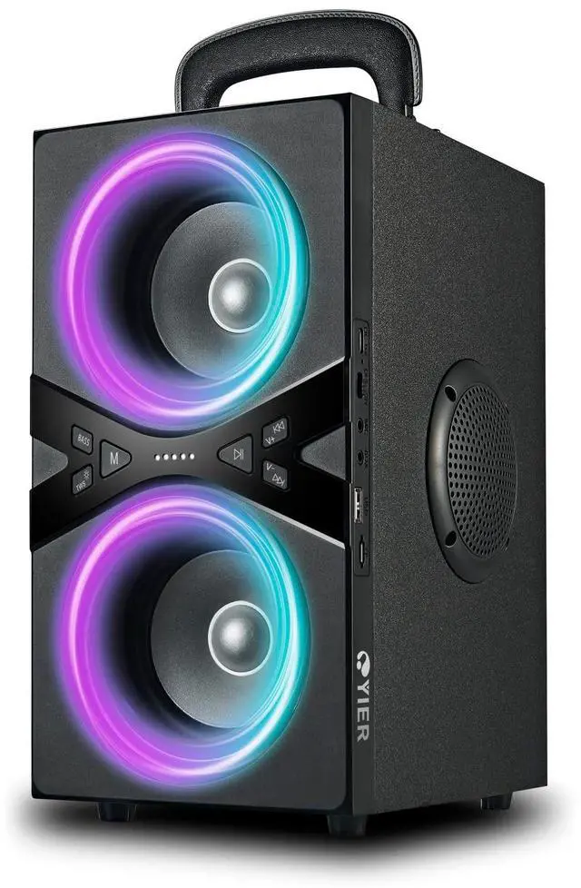 Besides, you can use it in the backyard jobsite garage garden kitchen beach, this speaker is enough to fill the house. ^^ Rich Punch Bass & Beats Driven Light ShowYIER party speaker is equipped with the latest bassup technology. Press this Bass button, this speaker will packs a punch and is enough to fill the whole party with music. And with the excellent rhythm light show, your party will more shine. Let's start preparing for summer vacations and parties. ^^ Wooden SpeakerWhat makes the 'perfect' speaker enclosure? -Definitely a wood framed speaker.
