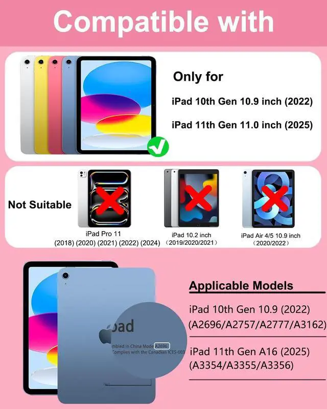 Generation 10.9 inch 2022 (Model: A2696/A2757/A2777/A3162). Please check your iPad model before purchasing, this product cannot be used with other models.