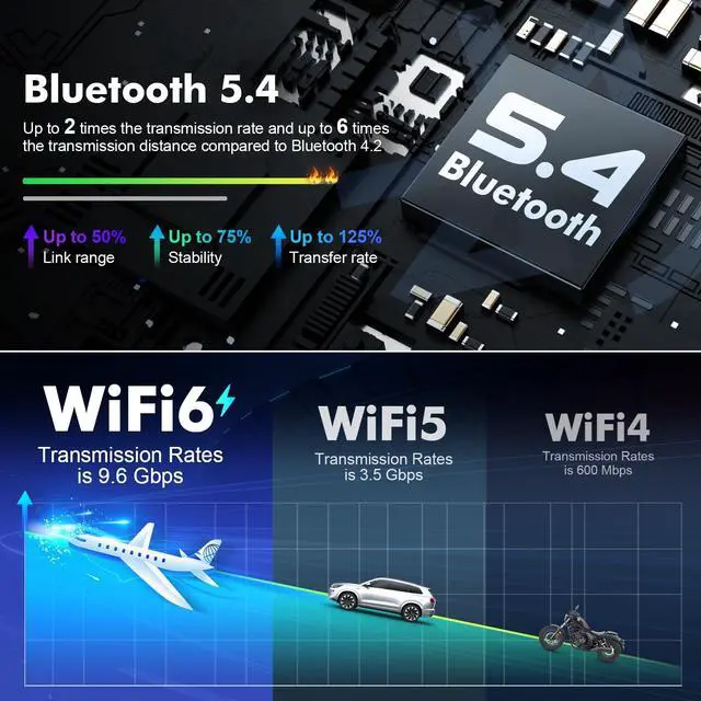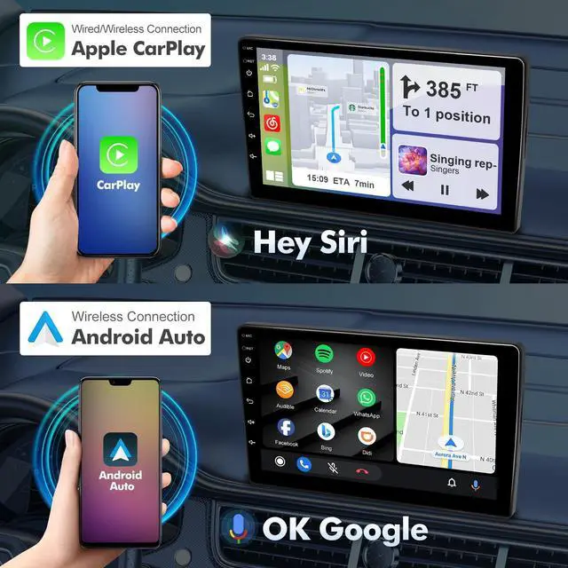 The wireless connection to CarPlay has lower latency and is more stable. Enjoy wired CarPlay and Android Auto functionality on this Android car stereo. Access calls, messages, and music seamlessly. You can even wake up Siri for voice control. ^^ Bluetooth 5.4 Car Stereo with FM RadioStay hands-free and distraction-free with the Bluetooth functionality of this car stereo. It has a built-in clear microphone for answering and making calls. The Bluetooth wireless audio streaming allows for a superior music listening experience. Additionally, the FM radio has 18 preset stations, so you can tune in to your favorite programs anytime.