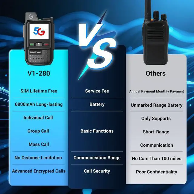 Avoid Frequent Charging: Equipped with an 8000mAh high-density rechargeable battery, it supports up to dozens of hours of continuous use on a single full chargefar exceeding the battery life of ordinary walkie-talkies (usually 2000-5000mAh). Whether for all-day outdoor adventures, multi-shift enterprise work, or long-distance travel, it eliminates the trouble of frequent charging, ensuring uninterrupted communication throughout the day. ^^ 5G POC Technology