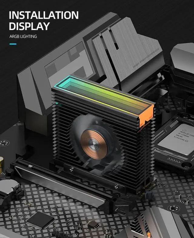 Two fans, stronger heat dissipation ^^ 4PIN PWM intelligent temperature control, 4Pin power supply interface, intelligent adjustment of fan speed based on temperature ^^ 5V3Pin light effect divine light synchronization, 5V3Pin light effect interface, cool mirror light effect, motherboard synchronous light effect ^^ Quiet operation, low sound, providing a quiet working gaming environment ^^ Including two heat dissipation thermal pad ^^ Screw reinforcement