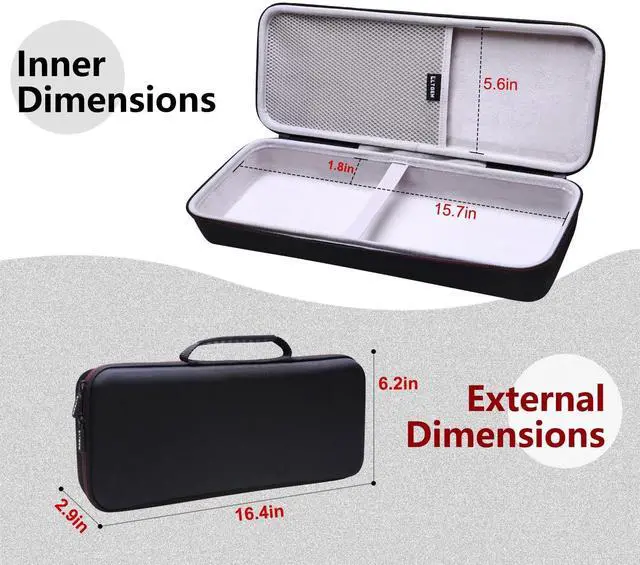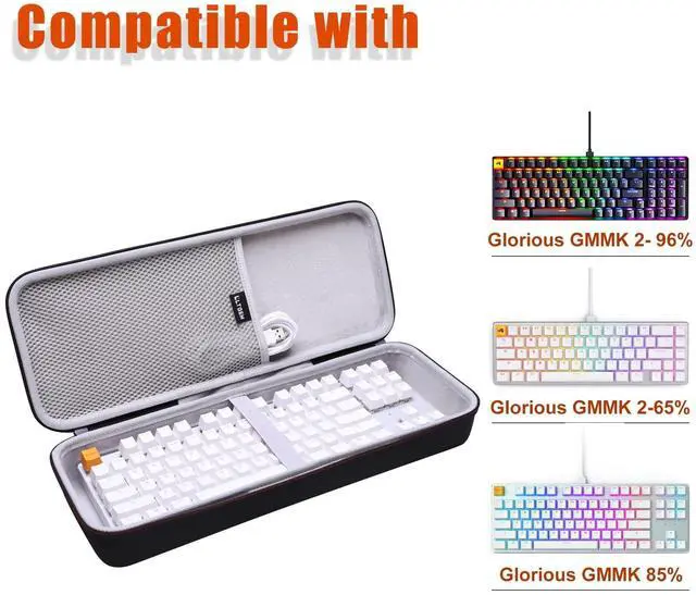 OUTER DIMENSIONS: 16.4" L 6.2" W 2.9" H. ^^ [Safe] Holding belt make the Glorious Gaming Mechanical Keyboard fixed in the case, Hard quality EVA material is Semi-waterproof, shockproof and durable to protect Glorious Gaming Mechanical Keyboard from impacts and splashes. ^^ [Convenient to Carry] The Glorious Gaming Mechanical Keyboard case features a strong rubber handle that allows for easy portability on the go. ^^ [Convenient Design] Inner mesh pocket design perfectly for keyboard accessories, smooth but strong 360 degree zipper for easy opening and closing. ^^ [For Sale] For sale is case only, Glorious GMMK 2 96% / GMMK 2 65% / GMMK 3 65% / GMMK PRO 75% Gaming Mechanical Keyboard are not included.