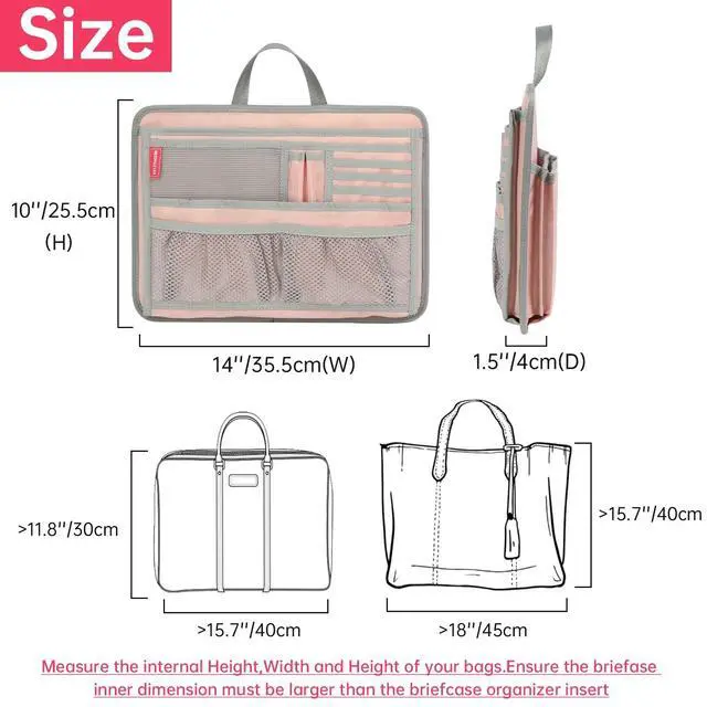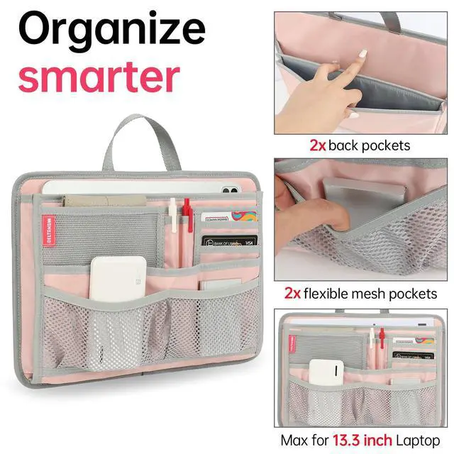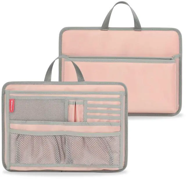 DELTAMANN Slim Rugged Organizer Insert for Briefcase Messenger Tote Bag-13 Pockets,Durable Padded Nylon,Handle (Pink)