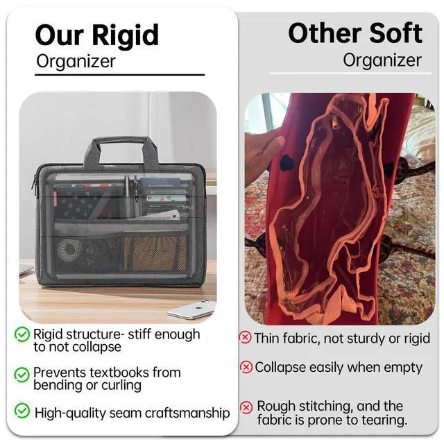 Size of rugged briefcase organizer insert: 10(H) x 14(W) x 1.6(D). Weight: 0.8 lb.