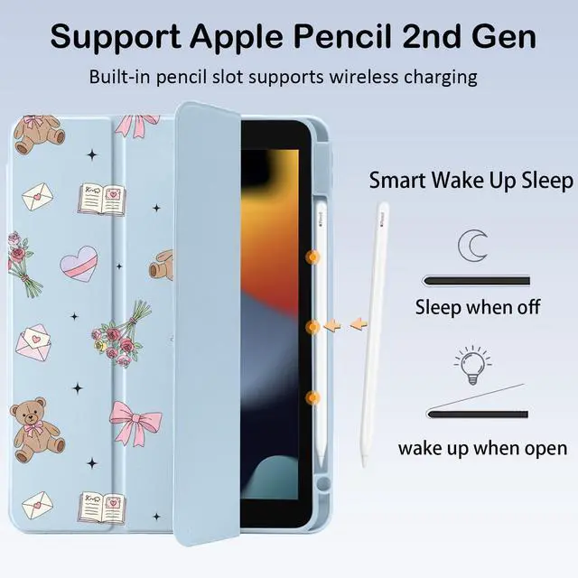 Please Note: It doesn't compatible with any other tablet models ^^ Well made with PU exterior, microfiber lining and soft silicone frame and clear acrylic back cover, offers full body protection from drops and scratches ^^ Built-in Apple Pencil holder, grab your apple pencil effortlessly whenever you want, keep the apple pencil as safe as your iPad all the time ^^ Cover has flip capability to transform the case into a viewing stand and typing stand. Available in a variety of bright colors and unique pattern ^^ Built-in magnetic strip provides auto sleep / wake function. Precise cutout and design allow easy access to all ports, sensors, speakers, cameras