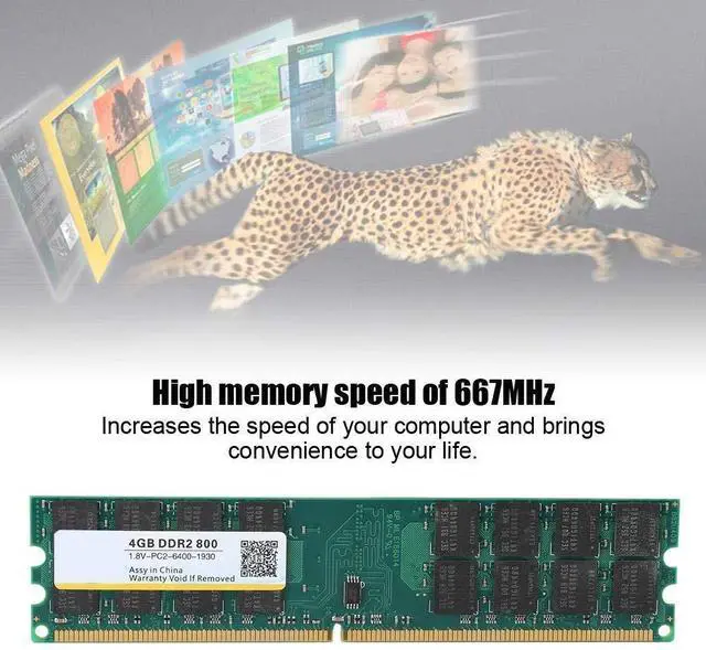 DDR2 4GB Memory For Dedicated MemoryThis is DDR2 4GB 800Mhz PC2-6400 1.8V memory module is dedicated for desktop computer, This is for dedicated memory, which is memory that can only be used on motherboards with CPUs for and easy to carry, suitable for desktop computers. ^^ 4GB 800MHz PC2-6400 MemoryDDR2 memory provide you with quick response time and fluent efficiency whether playing games or working, Increased memory capacity, increase computer operating speed, bring higher efficiency to your work and life. ^^ Note on CompatibilityThe memory is divided into memory card, DDR, DDR2, DDR3, DDR4.