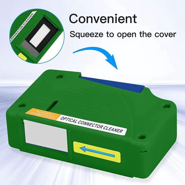 Antistatic PropertiesIt can effectively avoid re-adhesion of dust after the fiber is cleaned. ^^ Good cleaning Performance It can easily remove dust, oil and other debris from the ferrule to provides high-quality end face and connector finishes without the use of alcohol or solvents. ^^ More than 500 CleaningRecycle clean times up to 500+, Ergonomic, comfortable design with single action cleaning, also serious stain can be cleaned at once and the cleaning belt in the cleaner can be replaced. ^^ Application Suitable for cleaning LC/SC/FC/ST/MU/MTP/MPO/D4/DIN connectors. ^^ Brand Service12 months after-sales service gives you a good shopping experience.