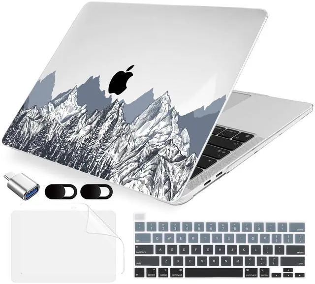 MecBevia Compatible with MacBook Pro 13 inch Case 2022 2021 2020 Release M2 M1 A2338 A2251 A2289, Plastic Hard Shell&Keyboard Cover&Screen Protector&Webcam Cover&Type-C Adapter, Mountain Sketch