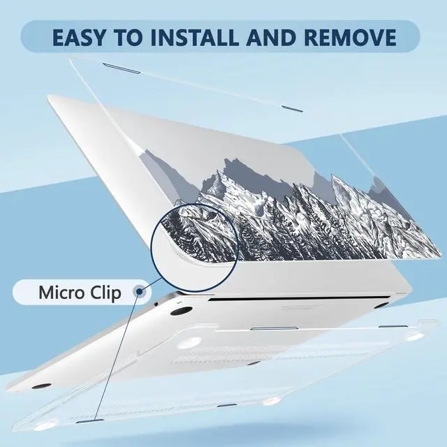 Installation: The package includes a protective case for the 13.3 -inch MacBook Pro, a keyboard cover, a screen protector, 2 webcam covers, and a Type-C adapter, offering complete protection. The micro-clips make installation and removal quick and easy, ensuring a secure fit while allowing convenient removal