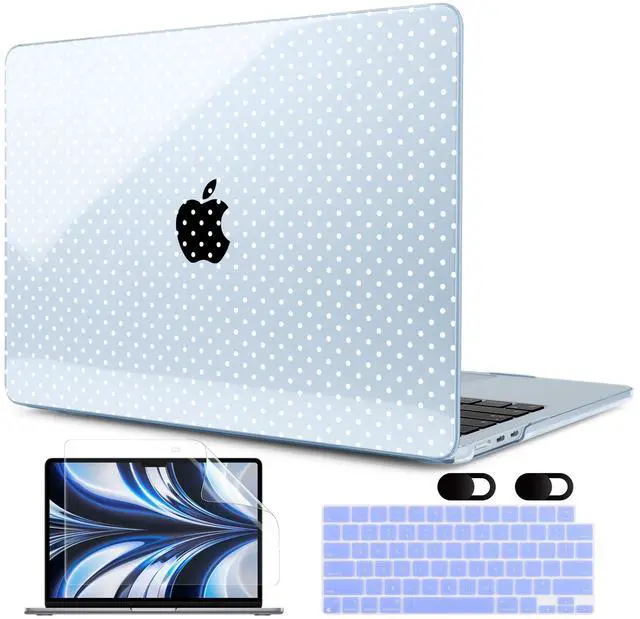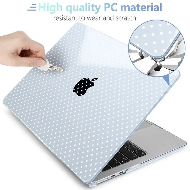 MEEgoodo Case for M5/M4/M3/M2 MacBook Air 13.6 inch 2026 2025 2024 2022, Fit Model A3449/A3240/A3113/A2681, Case Compatible with MacBook Air 13 inch, Blue & Polka Dots