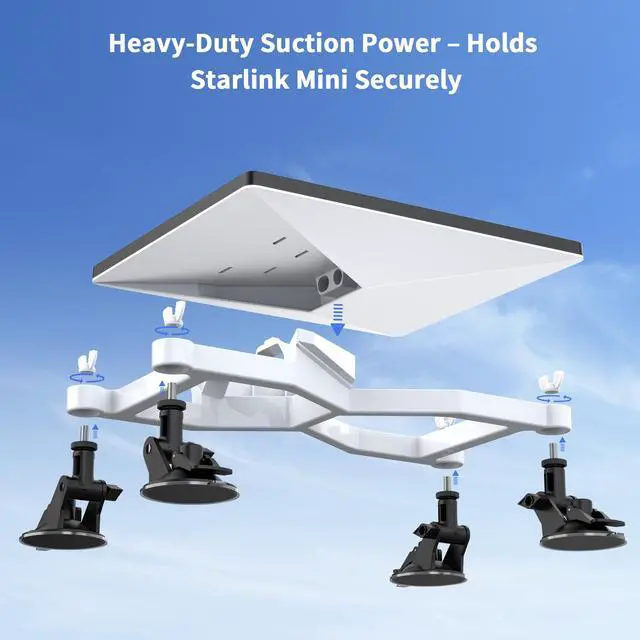 ^^ Tool-Free Installation-- The mount can be easily installed without any tools. After cleaning the surface, simply lock the suction cup and shake the mount after installation to test whether it is firmly installed in place. ^^ Durable and Weather-Resistant-- Built for outdoor use, this mount is designed to withstand exposure to the elements, making it ideal for temporary or semi-permanent installations on vehicles and boats. ^^ Versatile Installation Scenarios-- The suction cup mounting design of this Starlink mounting kit allows you to mount it on the roof, sunroof, rear window glass, or other smooth surfaces, ensuring that Starlink Mini is in the best installation position for providing signals.