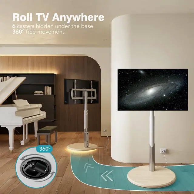 HEIGHT AND TILT ADJUSTABLE: The TV rolling stand supports 6 levels of height adjustment, TV viewing angle 10 adjustment, and the appearance design can be perfectly integrated with the indoor environment. The TV Cart is suitable for all kinds of scenes, living room, indoor, wooden floor, to meet all your needs.