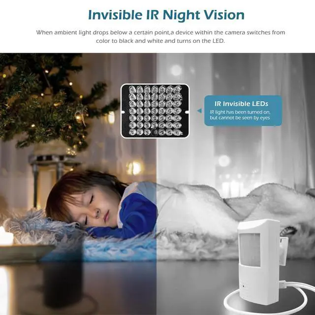 This not only avoids disturbing people's sleep or disrupting the indoor environment, preventing potential intruders from detecting the camera's operation. ^^ POE (Power over Ethernet) ConnectivitySimplifies installation and setup by transmitting both power and data through a single Ethernet cable. There's no need for separate power adapters or additional wiring, reducing clutter and making it easier to place the camera in optimal positions. It also ensures stable power supply and data transmission for consistent camera performance. ^^ Built-in Microphone for Indoor UseComes with an integrated microphone that captures clear audio alongside video, enhancing the monitoring experience for indoor scenarios.