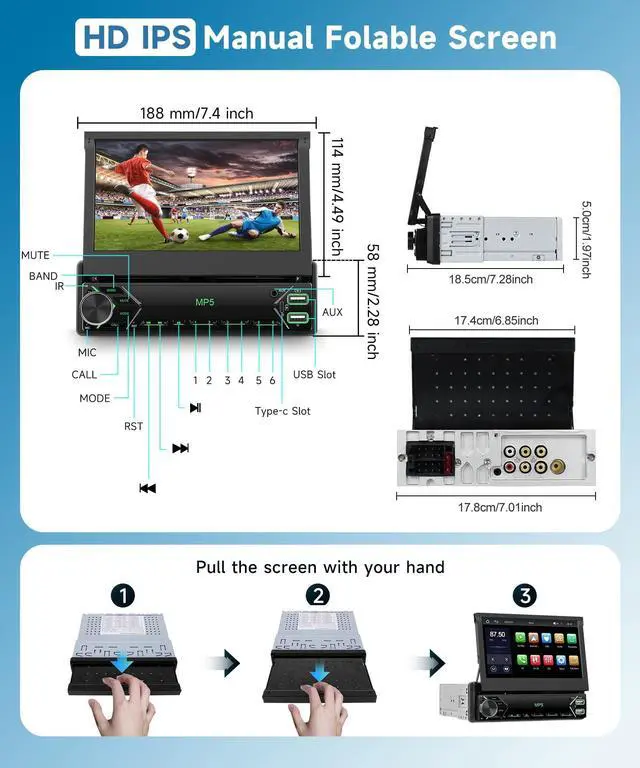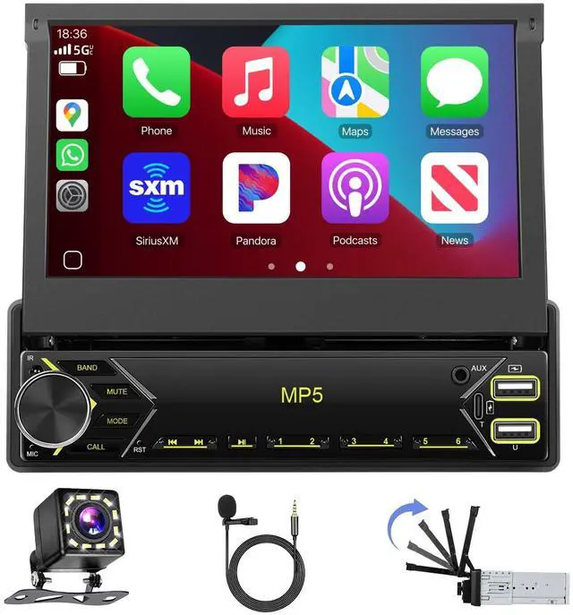 List: Single DIN Car Radio x 1Backup Camera x 1Rear Camera Input Cable x 1Power Cable x 1Horn Cable x 1External MIC x 1Manual x 1Steering Wheel Control (no battery included) x 1Accessories