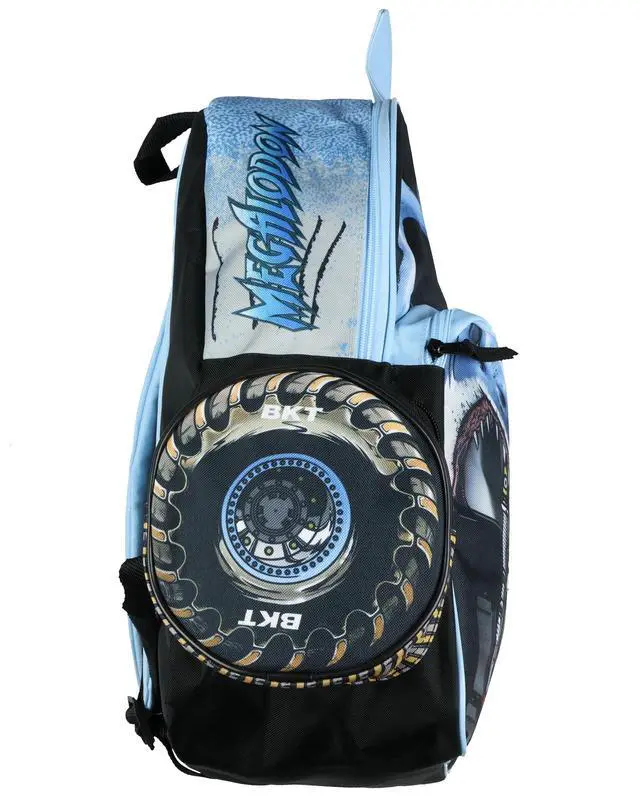 Tire-Inspired Side Pockets: Two zippered side pockets feature a rugged BKT tire print, adding to the Monster Jam theme while offering convenient storage for smaller accessories ^^ Comfortable and
