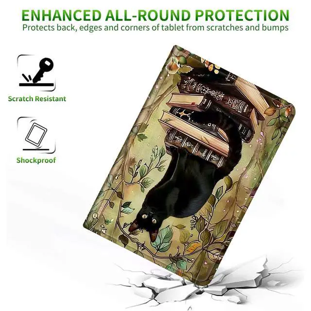 RWUTYTIUL for Fire HD 10 & 10 Plus(13th/11th Generation, 2023/2021 Release) Case, Shockproof Smart Protective Multi-Angle Viewing Tablet Cover for Women Men with Auto Sleep/Wake, Book Cat