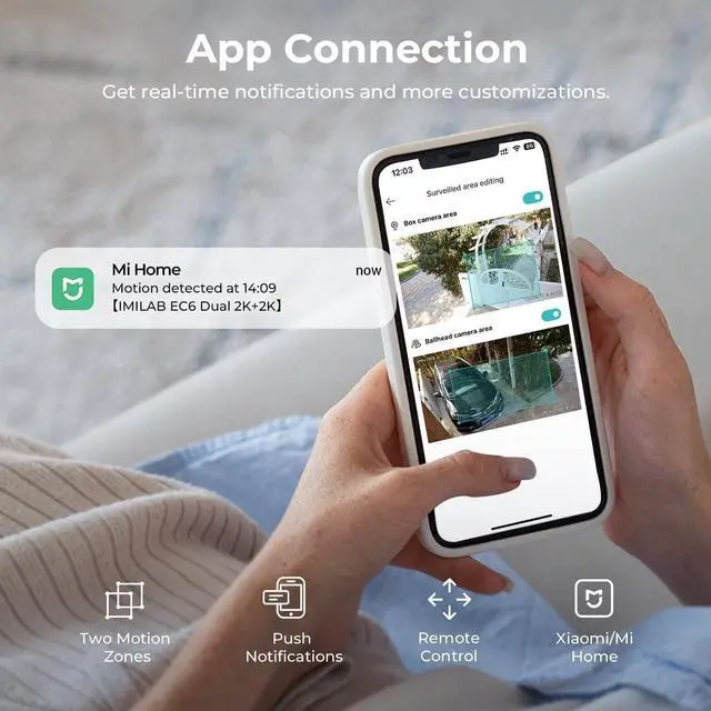 All features are built-in no monthly fees, so your home stays protected even when youre away ^^ Instant Notifications, Always ConnectedThe Xiaomi Home/Mi Home app allows for more customization and remote control. Set up to two motion zones to let the outdoor surveillance camera 24/7 continuous keep a close eye on and react according to the object. Receive immediate push notifications from the app in any situation ^^ Effortless Setup for Any HomeThe EC6 Dual wired outdoor camera includes a 10FT (3M) power cord, universal adapter (100V-240V, two-prong plug), and mounting kit, all you need to DIY-mount it on walls, ceilings, or columns ^^ Flexible Storage Choices Store footage locally on a MicroSD card (up to 256GB, not included) for privacy, or use cloud storage (3-month free trial for new users) for motion-triggered clips.