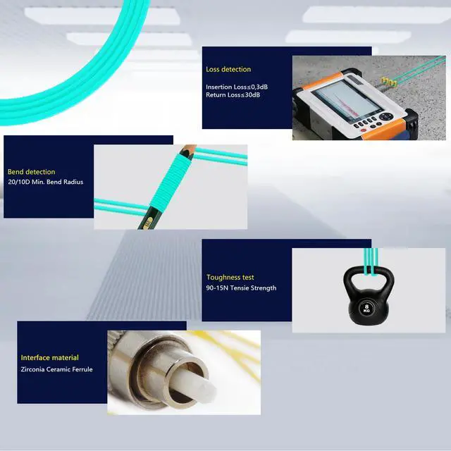 Flexible and reliable performance: With a minimum bend radius of 7.5 mm, our cable is constructed with high-rated 50/125um fiber and cladding that is insensitive to bending, ensuring small optical loss and stable transmission. Its low insertion loss and high return loss enhance its performance and reliability ^^