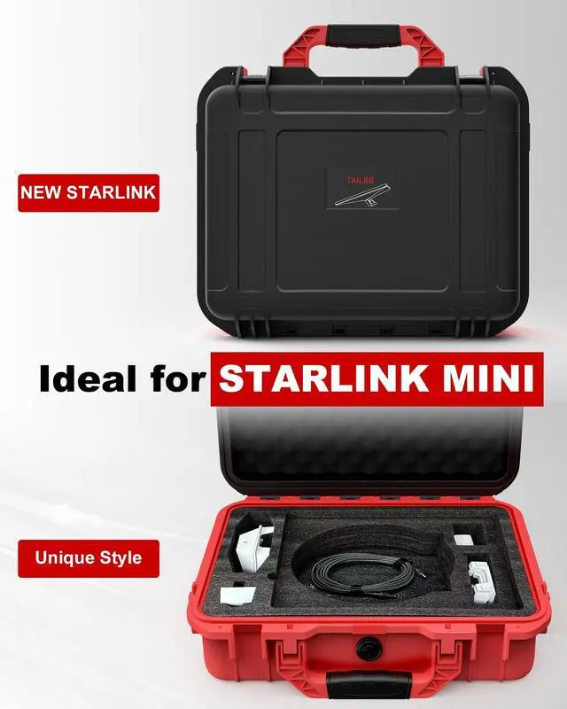^^ Shock-Absorbing Pearl Cotton + Sponge LiningPremium dual-layer padding combines pearl cotton for shock absorption with sponge for cushioning, protecting delicate components from vibrations and scratches. The closed-cell foam is easy to clean and resistant to oils and liquids. ^^ Stylish Dual-Tone Design with Portable AccessoriesStand out with a bold black top and red bottom color scheme. Includes an adjustable shoulder strap for hands-free carrying and a waterproof accessory pouchfits starlink mini dish for quick access to small items like dongles or adapters. ^^ Travel-Friendly & Durable ConstructionAirline-approved dimensions and a purge valve for altitude changes make it ideal for global travel.