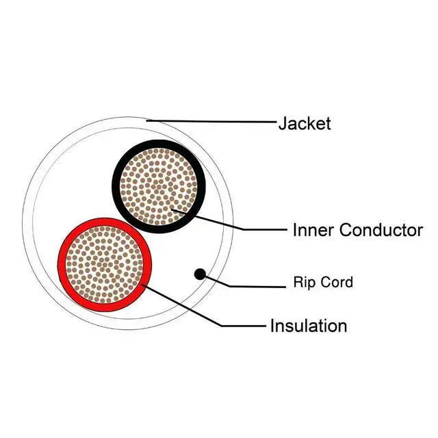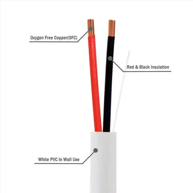 Conductor Material14 AWG, 2 Core (Stranded BC) Oxygen Free Copper Wire Strands50Feet15Meter ^^ Electrical PerformanceRated Temperature (C) 75Voltage Rating300VReference Standard ETL, CMR, CL3 ^^ InsulationMaterialPVCInsulation ColorBlack, Red ^^ JacketMaterial PVC, Color (White) ^^