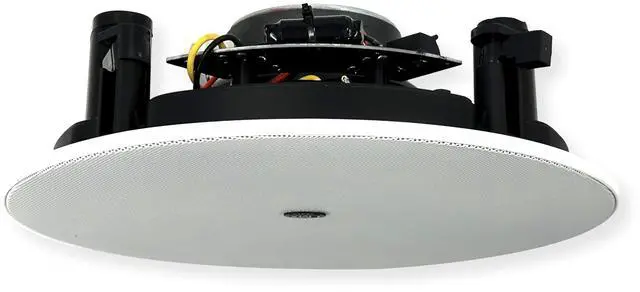 Features: - Slimline 2-way ceiling speaker- Hi-fi 2-way in-ceiling loudspeakers for professional sound system- Hi-flex polypropylene cone main driver for extended low frequency response- Built-in crossover for clear tweeter and heavy performance bass- 6.5" hi-flex polypropylene bass speaker with separate 1.5" tweeter- Power output of 40W and Max output of 80W- Magnetic frameless grille, ABS baffle, and metal dome- With dual breathing holes for superior heavy-duty bass performance- Flush mount easy and secure installation- Grill design allows true frameless speakersSpecifications: -