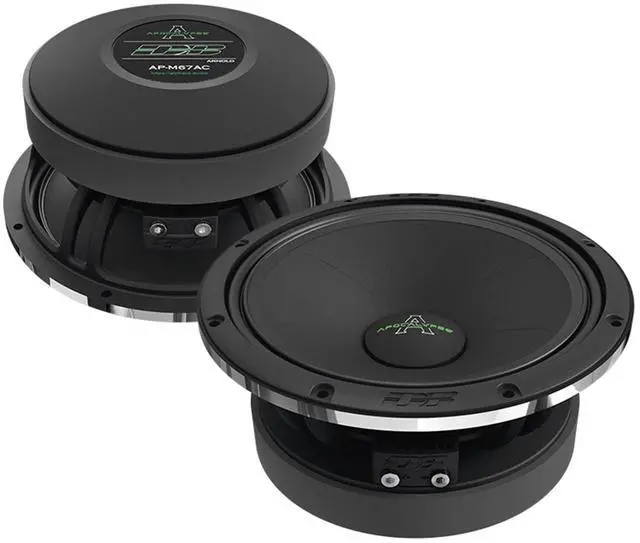 AP-M67ACThis Listing Includes: (2) Deaf Bonce 6.5" Midrange Speakers AP-M67ACDescriptionExperience unparalleled sound quality with the Deaf Bonce Apocalypse 6.5" 300W RMS 4-Ohm Mid Range Speakers Set (AP-M67AC). These speakers are designed to deliver powerful, clear, and precise midrange frequencies, making them perfect for any high-performance audio system. With a robust 300W RMS power handling and durable construction, the AP-M67AC speakers ensure long-lasting, reliable performance. Whether you're a car audio enthusiast or a professional installer, these speakers will elevate your audio experience to new heights.