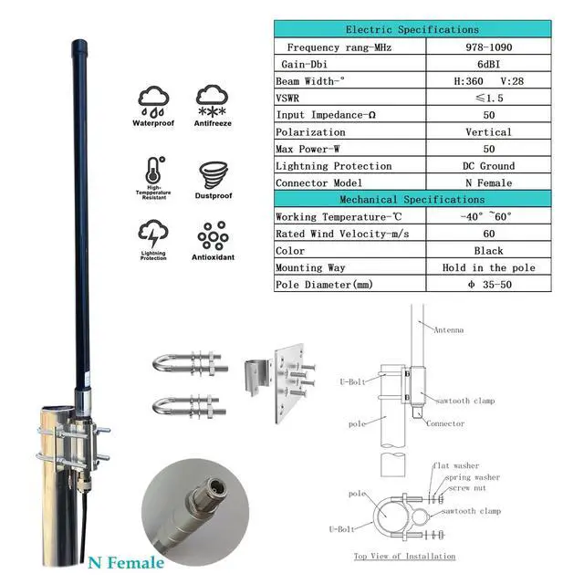 ^^ Frequency: Frequency band support 978/1090MHZ, Gain 6DB, N-F connector, antenna internal made of copper tube, copper (element) tube enables the antenna to obtain lower VSWR and withstand higher power. antenna data from the actual test in the microwave darkroom. Buy this antenna to improve your ADS-B signal. You can see more planes at a greater distance.